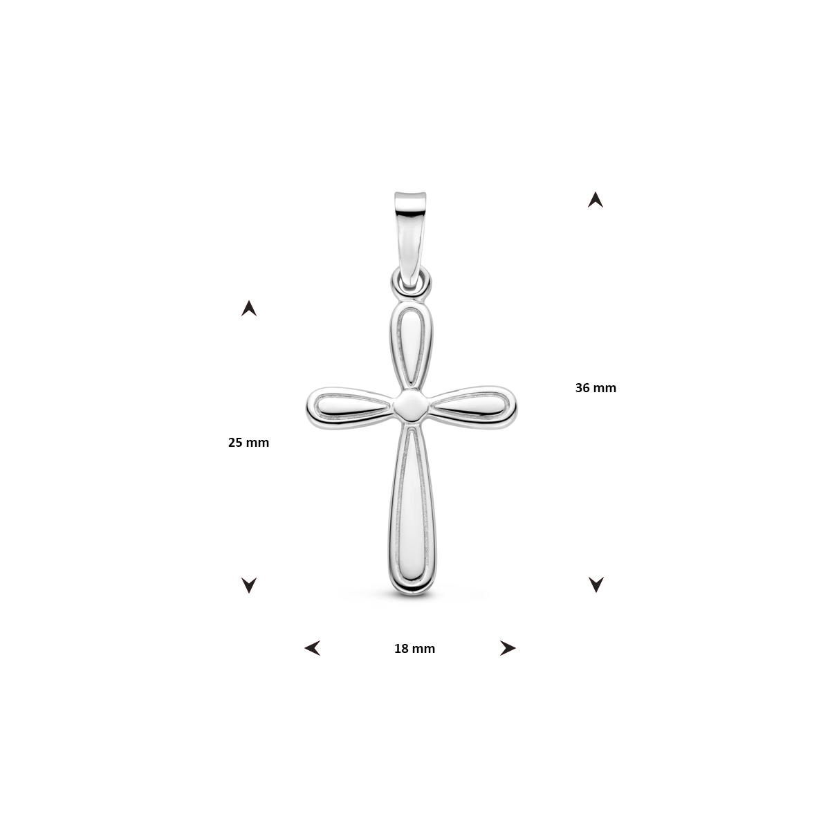Gerhodineerd 925 zilveren hanger uitgevoerd met een kruis, De hanger heeft een totale hoogte van 36mm.
