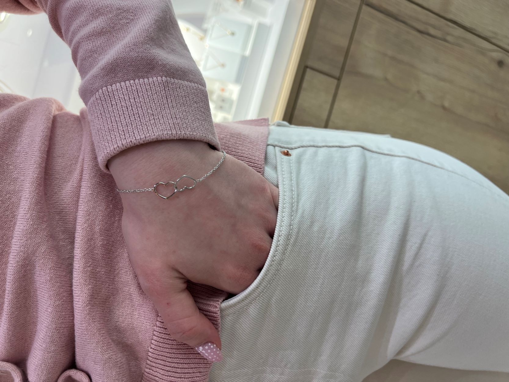 Gerhodineerd  zilveren 1.2mm breed anker armband met een lengte van 16cm en een extensie van 3cm uitgevoerd met 2 harten van 9x12mm. Breedte: 12 mm