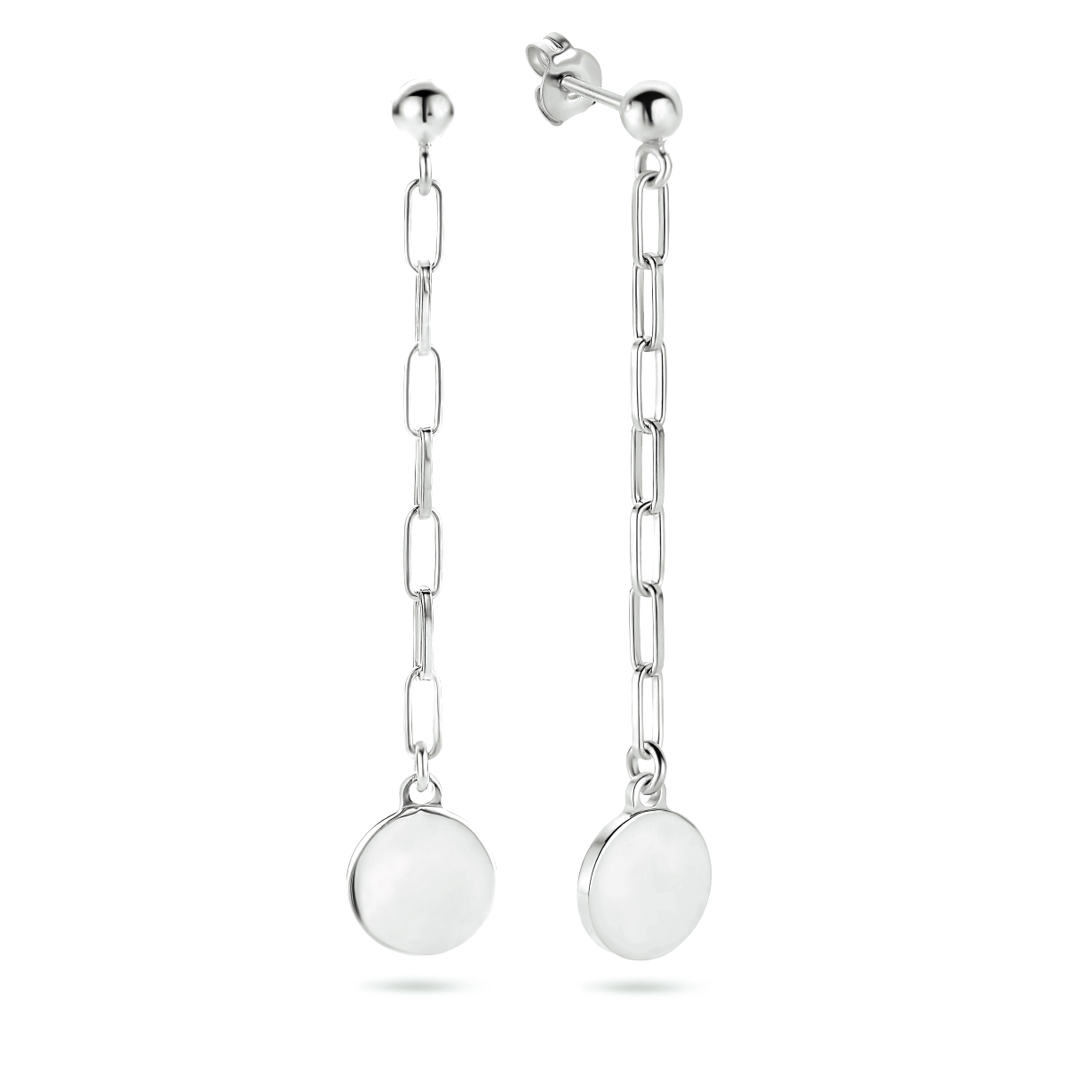 Gerhodineerd 925 zilveren oorhangers uitgevoerd met een rondje. De oorhangers hebben een totale hoogte van 5.5cm.